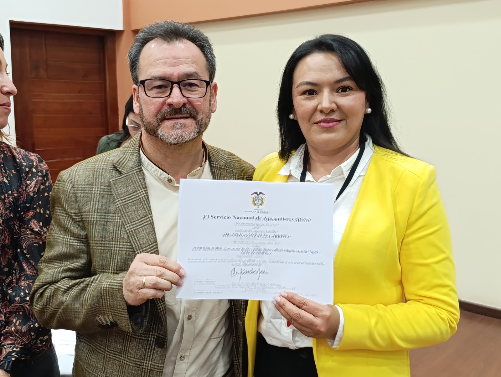 En el marco de la clausura del programa de confección textil Samacatex, treinta y una mujeres recibieron la certificación de competencias laborales del SENA en la norma «Operar máquina plana según manual técnico y parámetros de calidad / Máquina plana de una aguja-Nivel Básico».