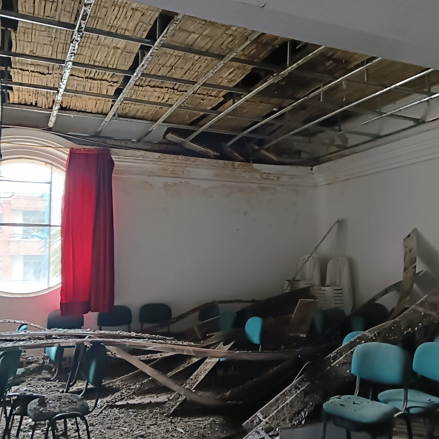 Grande el susto que vivieron los estudiantes hace algunos días, cuando el techo de la Institución Educativa Sagrado Corazón de Jesús colapsó en horas de la mañana, cayendo sobre las sillas, televisores y elementos de clases.