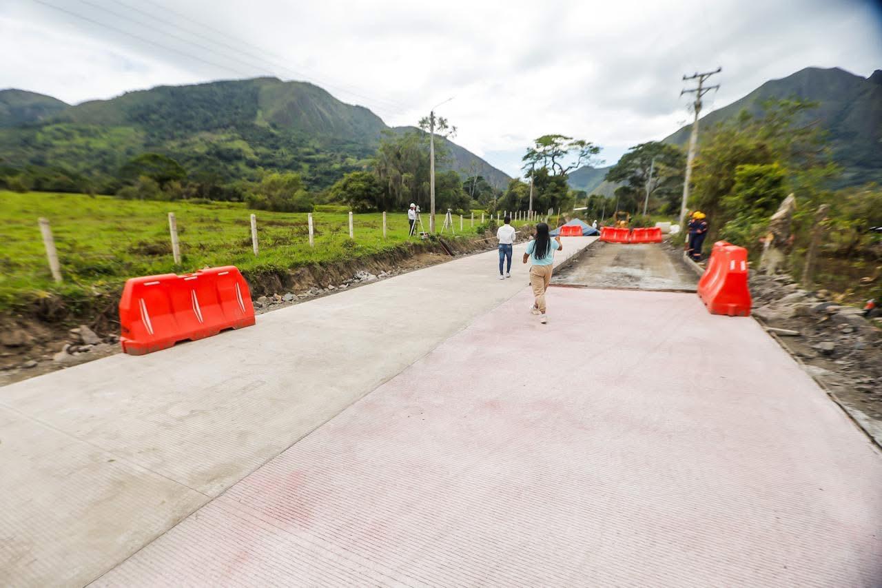 “Se están realizando explanaciones de vía y cajeos. Ya tenemos varios sectores con la instalación de subrasante y tramos con geocelda, la cual consta de una estructura de 8 metros de ancho y un espesor de 17 centímetros. Saliendo del municipio, ya tenemos un tramo intervenido con lozas de concreto MR 43. Se están realizando obras hidráulicas, revisamos unos box coulverts de considerable longitud y se proyectan unas obras de contención menores, junto con algunos puentes; ya se tienen estudios y diseños, y está la programación para el próximo año”, destacó el funcionario.