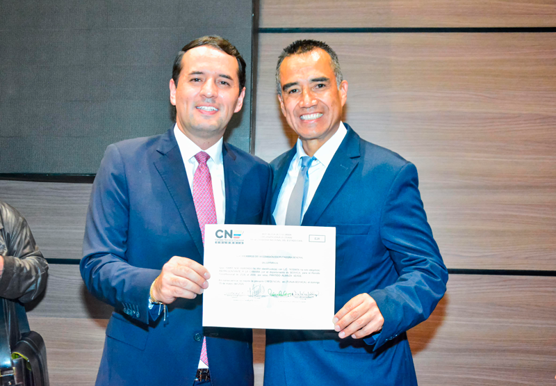 Padre del representante José Luis Bohórquez recibió la credencial por su hijo quien no pudo asistir. Foto | Hisrael Garzonroa / EL DIARIO