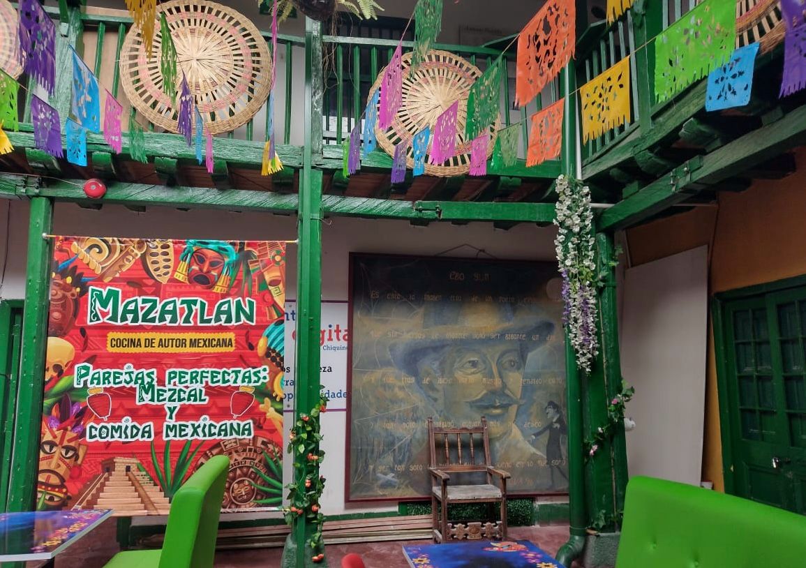 Se ha transformado el aroma a tinta fresca, papel envejecido, madera húmeda y paredes que susurran historias, por el olor a comino, chile en polvo, ajo, pimienta y un picantico que contrasta con la decoración pintoresca, catrinas, sombreros en balcones y coloridos banderines que surcan el techo ante los ojos sorpresivos y cansados del rostro del poeta Julio Flórez (1867-1923), que junto a su amigo, representado en el busto del humanista Pío Alberto Ferro Peña (1885-1956), es obligado a presenciar tan abrupta intervención en este espacio cultural.