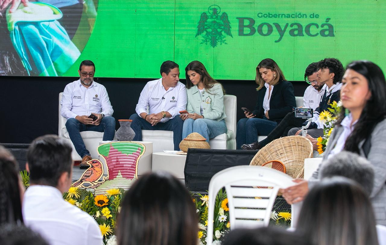 4. De izq. a der.: William Archila, Jefe de Gabinete; Carlos Amaya, Gobernador de Boyacá; Daniela Assis, gestora Social; Rocío Bernal, alcaldesa de Duitama; Jairo Neira Sánchez, secretario de Planeación; y, Emanuel González, personero del I.T.I. Rafael Reyes.
