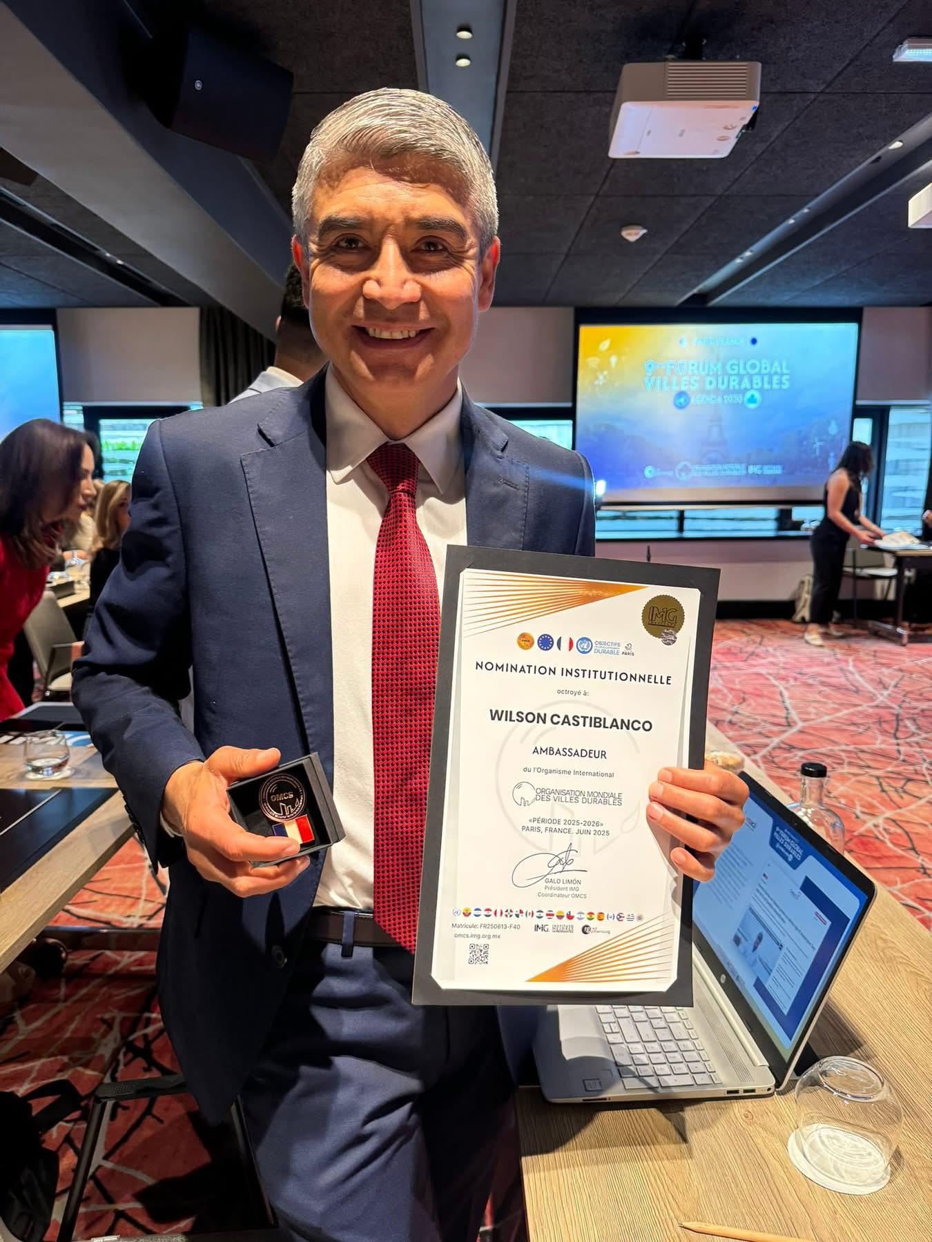 El alcalde de Samacá, Wilson Castiblanco Gil, fue nombrado Embajador de la Organización Mundial de Ciudades Sostenibles (OMCS) en reconocimiento a su liderazgo para garantizar y fortalecer el acceso a agua potable y saneamiento básico para más de 20.000 habitantes del municipio.