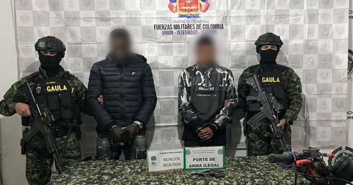En jurisdicción de Aquitania fueron capturadas dos personas en flagrancia y se encontró en su poder armas de fuego y prendas militares