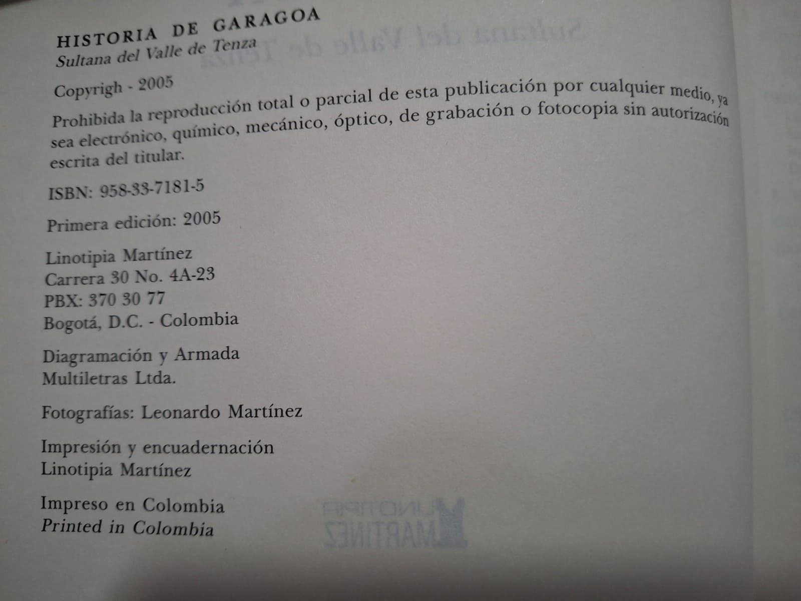 Colofón del libro