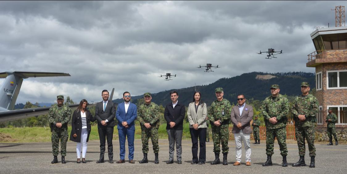 Durante la ceremonia, el Mayor General Olveiro Pérez Mahecha resaltó que la cesión del predio de más de 353.000 metros cuadrados responde a una necesidad estratégica ante la evolución de las amenazas globales y nacionales, especialmente frente al uso de drones en la guerra asimétrica, que plantea nuevos retos para la defensa de la soberanía del País.