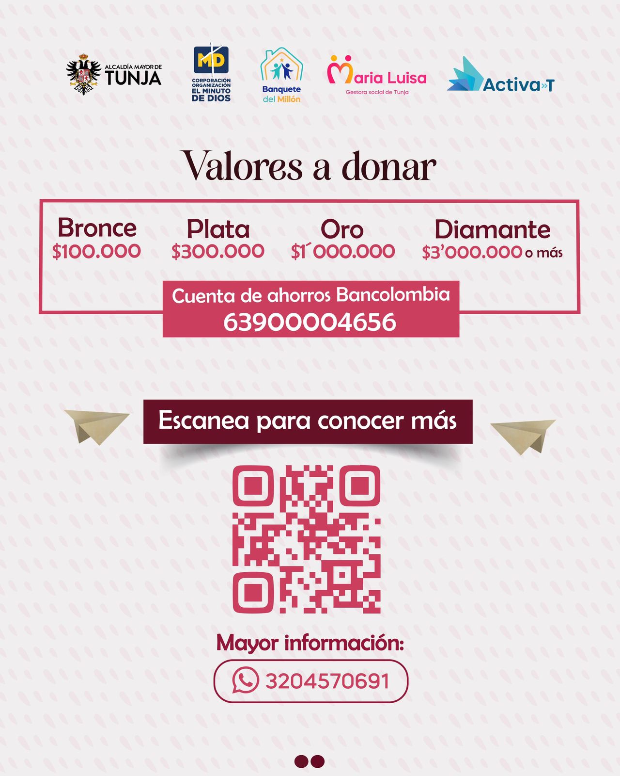 El Banquete del Millón 2025 será un espacio cargado de esperanza y sentido social, donde la solidaridad de los tunjanos se convertirá en hogares dignos y futuros mejores para muchas familias de la capital boyacense.