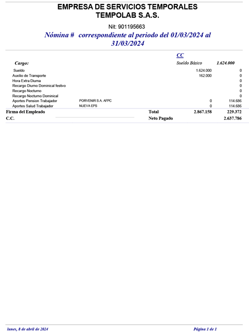 Los dos desprendibles de pago, según la denuncia, corresponderían a una misma persona, pero uno es del 2024 y el otro del 2025, «del mismo mes y se ve la diferencia de pago de una cooperativa a otra, el mínimos es porque el sueldo esta en 1.624.000 y hay compañeros que un mes les puede llegar hasta ese valor y otros los puede llegar un poquito más».