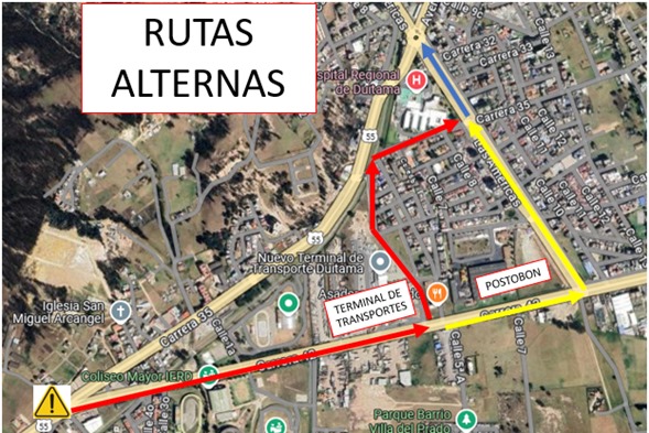 Para el ingreso a la zona céntrica de Duitama se habilitaron los siguientes corredores viales: Carrera 42 – calle 6 A (sector terminal de Transporte) – Carrera 35 – Avenida de las Américas (Calle 9) – Glorieta Hospital. Y Carrera 42 – Avenida de las Américas (Calle 9) – Glorieta Hospital.
