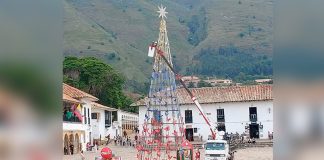 Por reclamos ciudadanos, quitan aviso de Claro del árbol de Navidad de Villa de Leyva