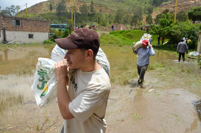 Gracias a la articulación institucional, se recibió apoyo solidario de Holcim Colombia, Cementos Argos, Banco Agrario, Fosfatos Boyacá, y los ingenieros Víctor Manuel Ríos y Augusto Cely, quienes han contribuido con materiales para la construcción de jarillones de contención.