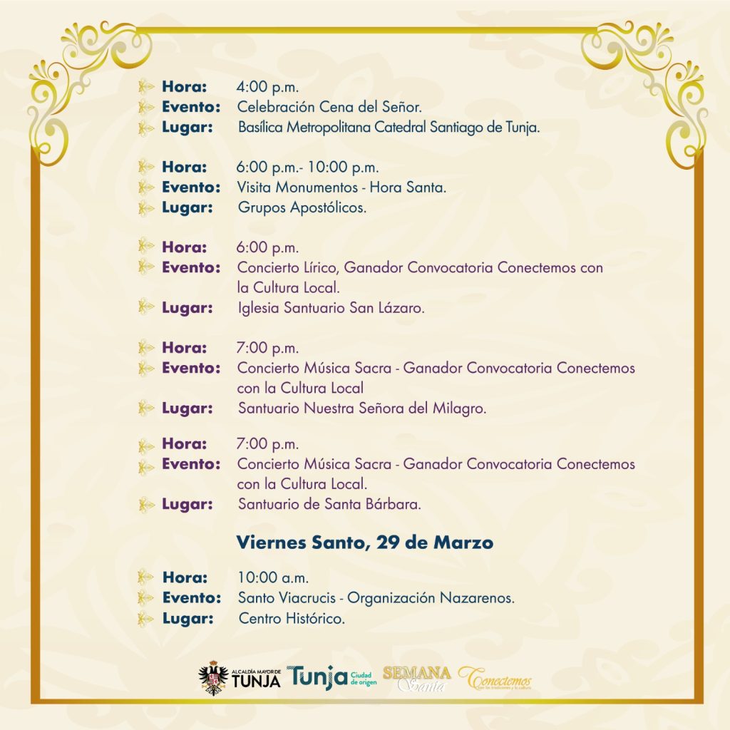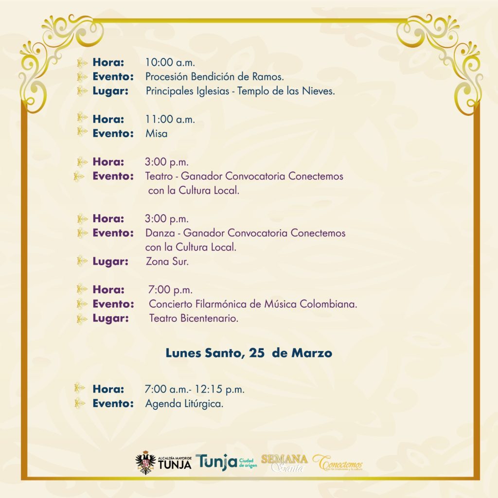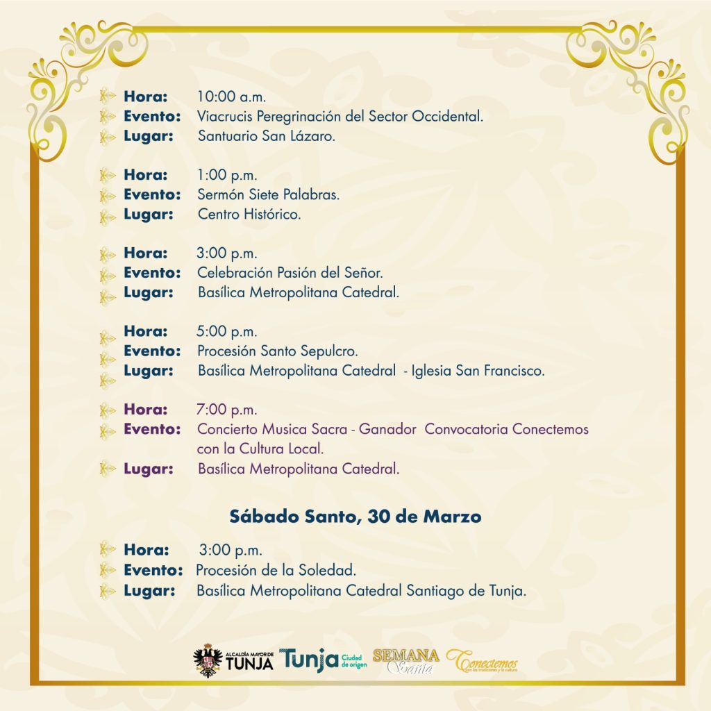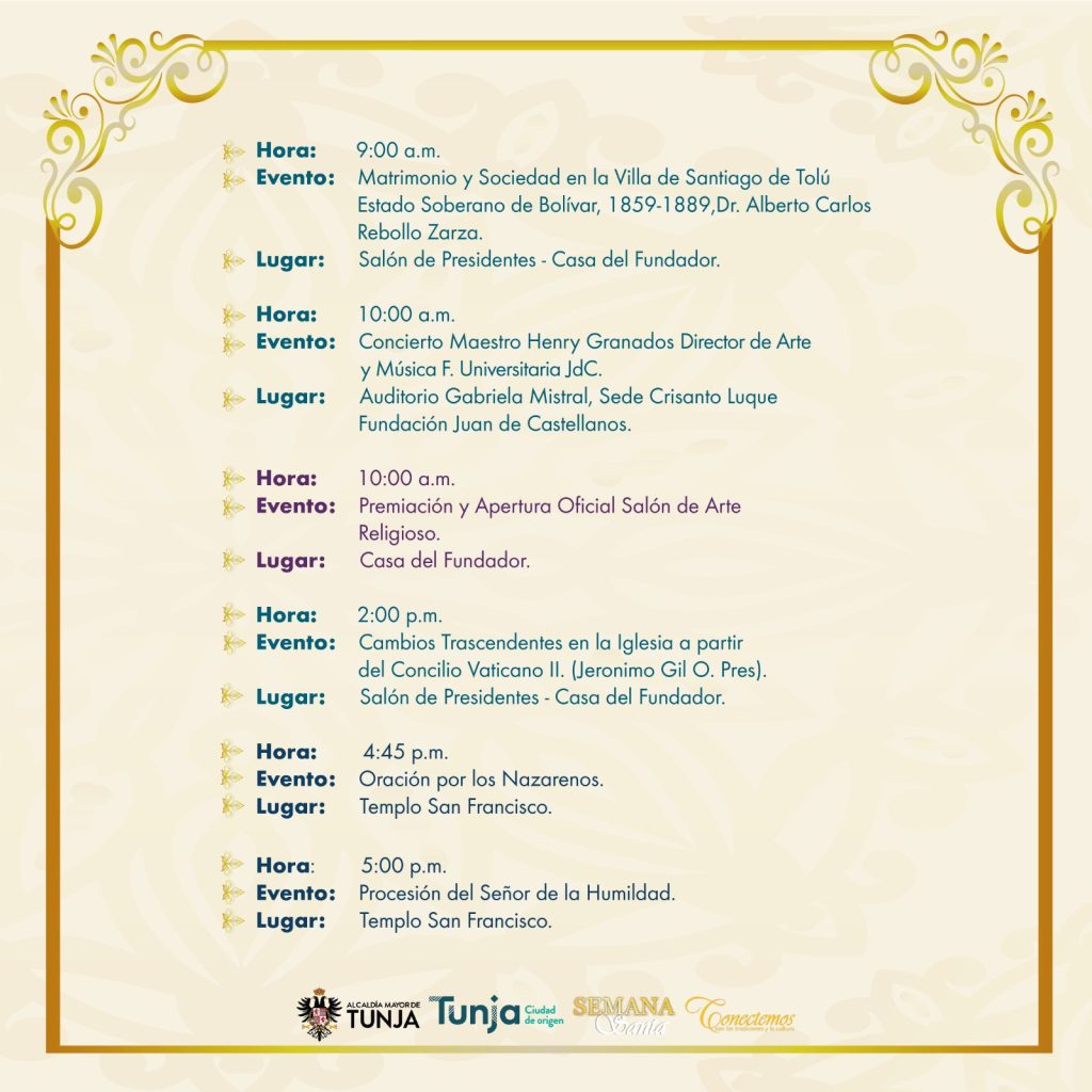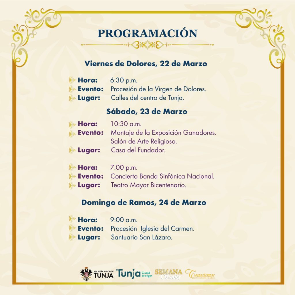 AgendaCulturaTunjaPrográmese para vivir la Semana Santa en TunjaPor ELDIARIO Boyacá - marzo 21, 2024Imagen | Alcaldía TunjaPublicidad Este es el programa oficial de la Semana Santa en Tunja.Publicidad