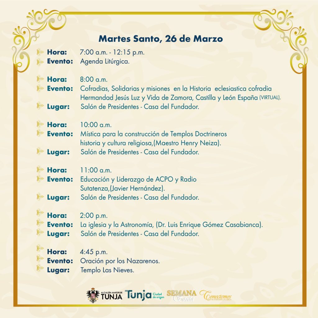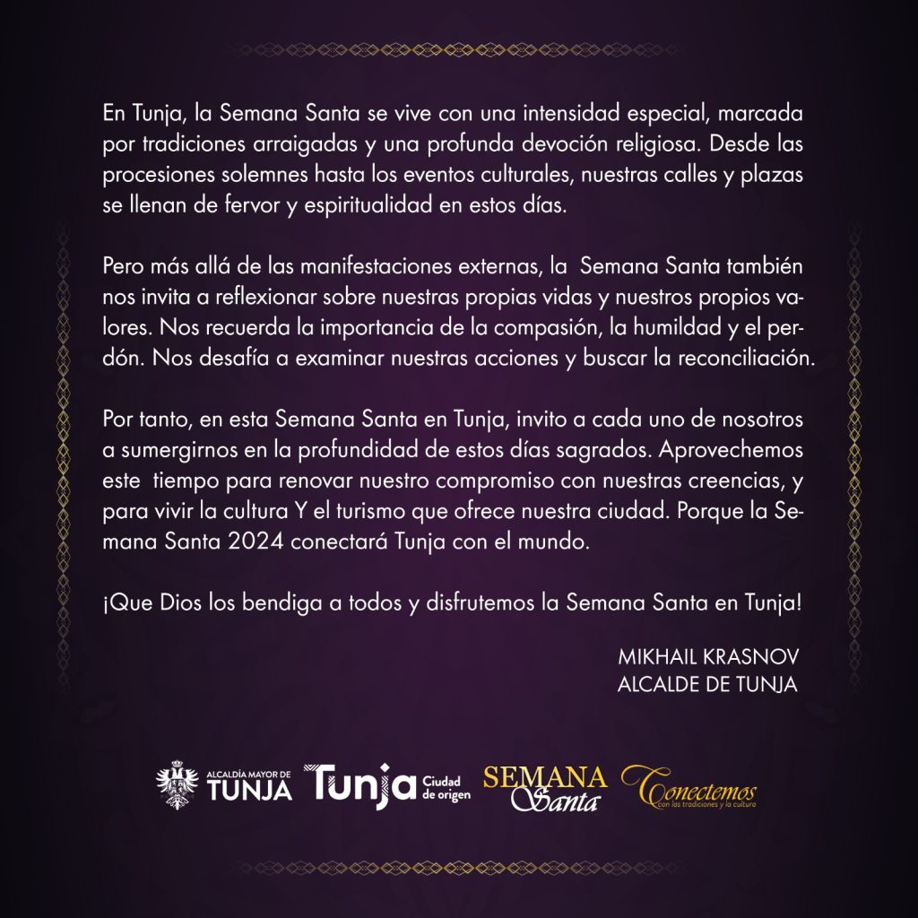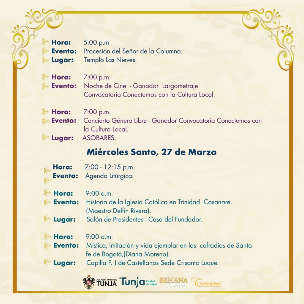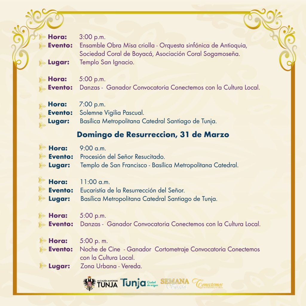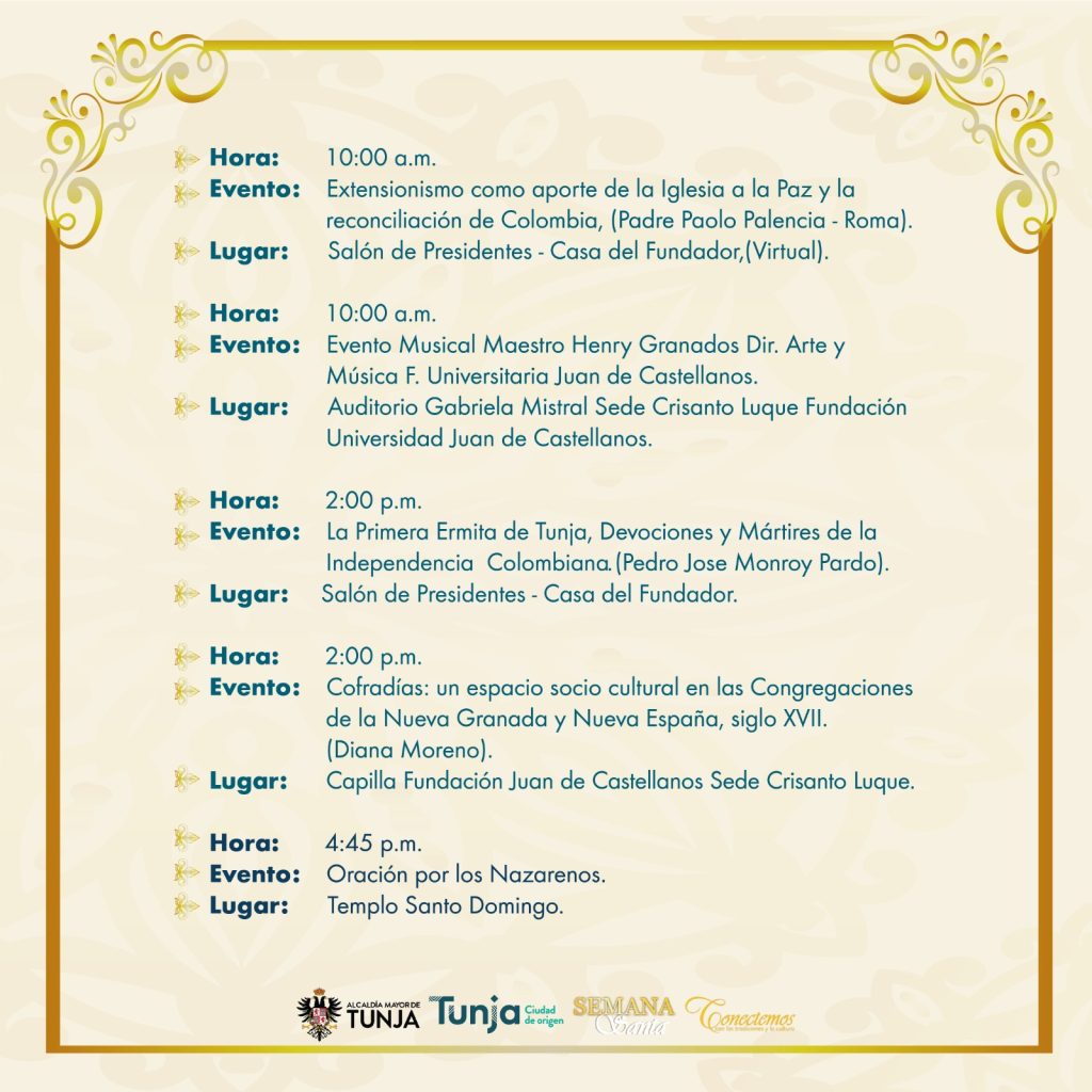 AgendaCulturaTunjaPrográmese para vivir la Semana Santa en TunjaPor ELDIARIO Boyacá - marzo 21, 2024Imagen | Alcaldía TunjaPublicidad Este es el programa oficial de la Semana Santa en Tunja.Publicidad