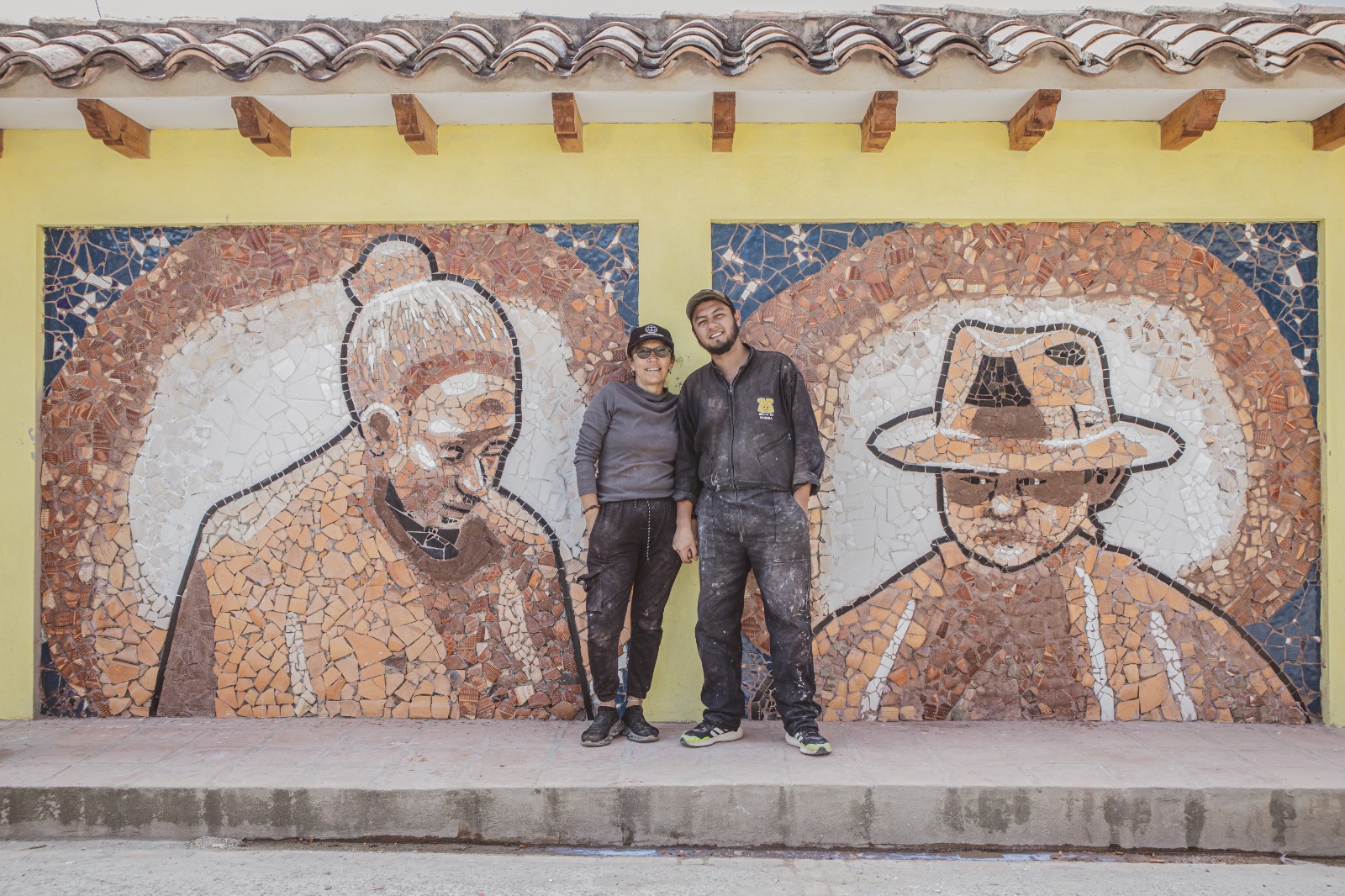 El artista, que se define como “alfarerodescendiente”, presentó con esta intervención su segunda obra en la técnica del mosaico en guijarros, disciplina que comenzó con el mural Arte Vivo en el Territorio en Tunja, homenaje al maestro Jorge Velosa Ruiz y a la cultura campesina.