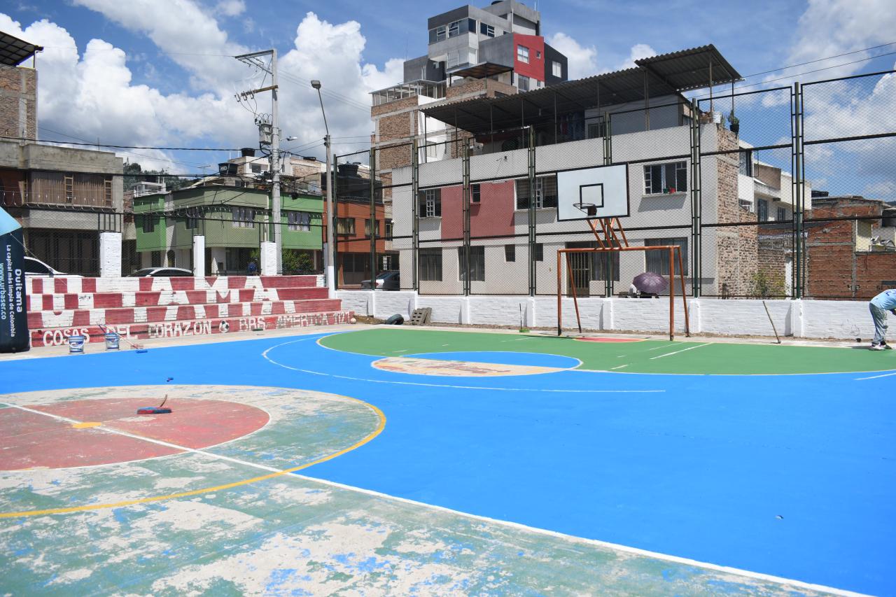 Urbaser y cerca de 50 habitantes del barrio Manzanares se unieron para mejorar el polideportivo del sector. Durante la jornada se pintaron las instalaciones, se adecuaron las zonas verdes y la fachada, y se creó un mural que dio color al espacio.