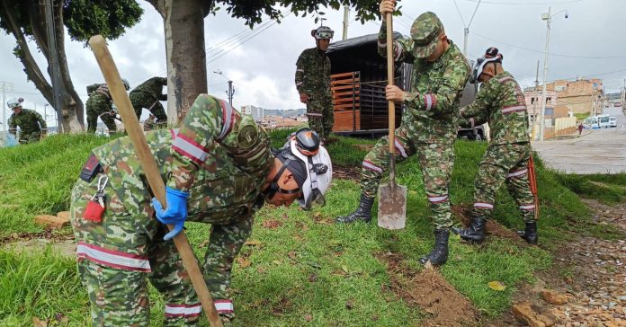 50 Eugenias fueron sembradas gracias al compromiso adquirido entre Urbaser y la comunidad del barrio San Ignacio, en una jornada que contó con el apoyo de la Junta de Acción Comunal, el Ejército Nacional y la Policía Nacional.